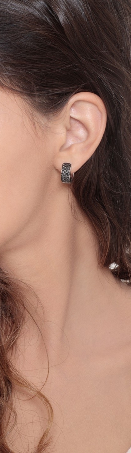 Aros en oro blanco de 18k con pavé de diamantes negros