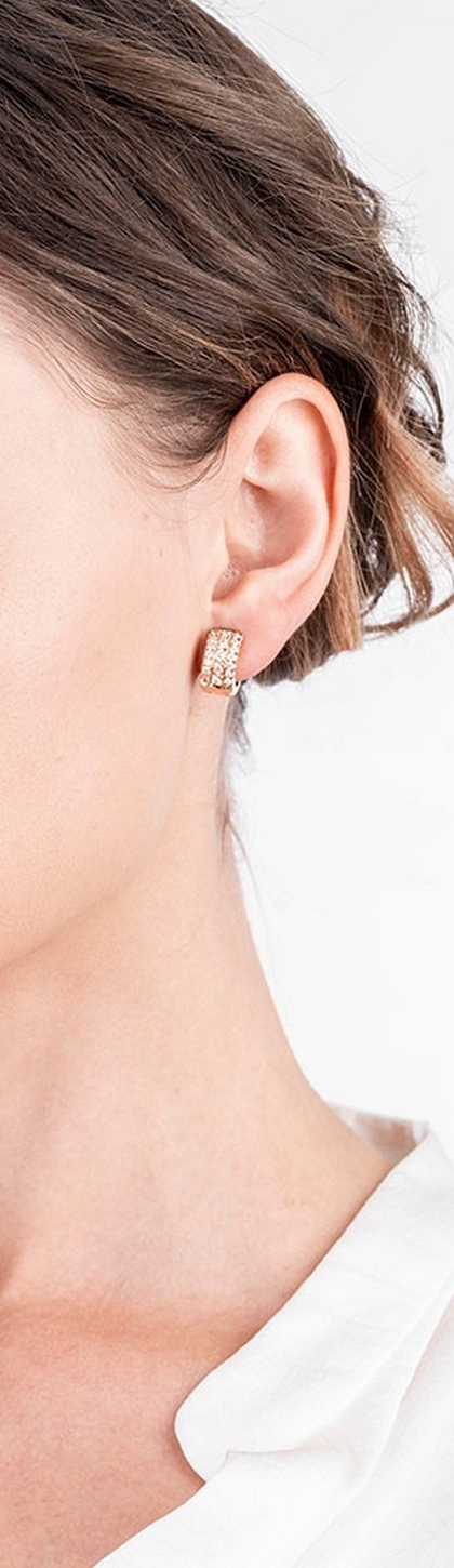 Pendientes en oro blanco 18k con tres filas de circonitas