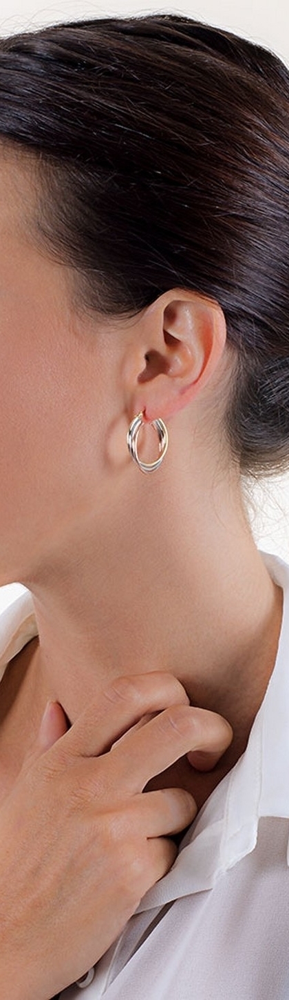 Pendientes ovalados entrelazados en oro blanco y amarillo
