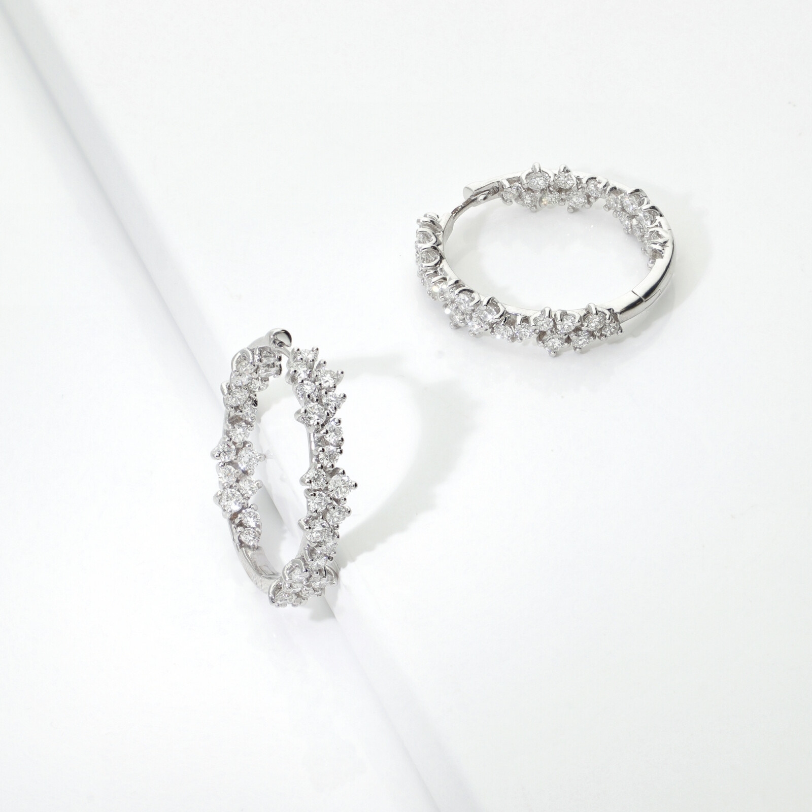 Pendientes aro con diamantes interiores y exteriores oro blanco 18k