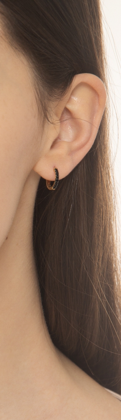 Pendientes aro en oro amarillo 18k con circonitas negras