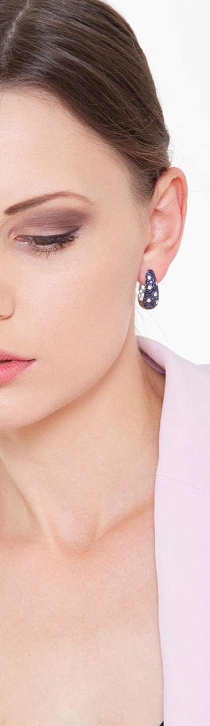 Pendientes aro en oro blanco 18k con diamantes y zafiros azules