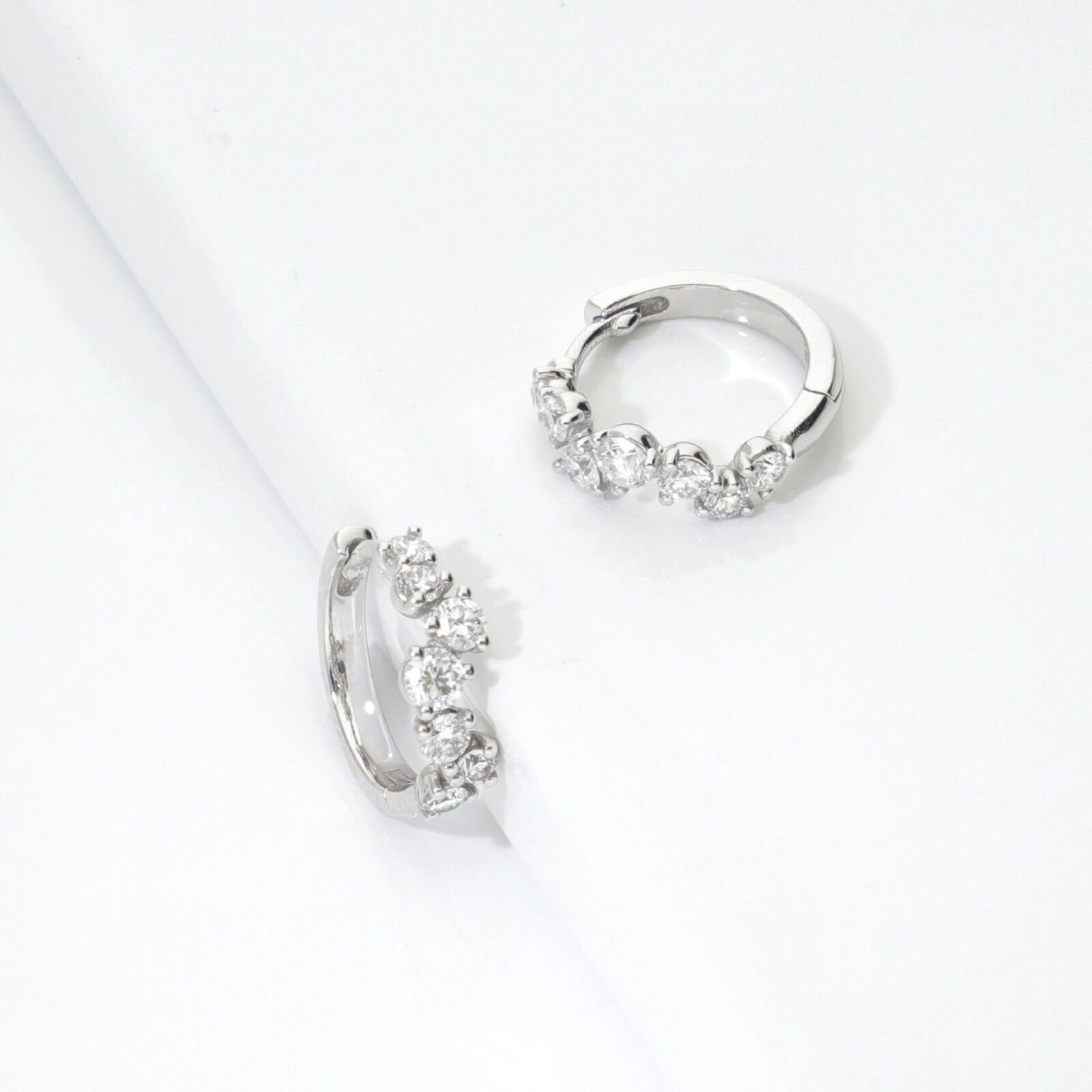 Pendientes aro en oro blanco de 18k con diamantes naturales