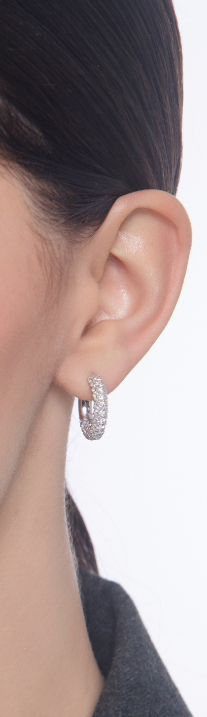 Pendientes aro en oro blanco de 18k con diamantes naturales