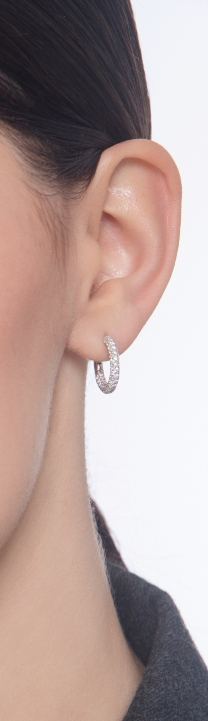 Pendientes aro en oro blanco de 18k con diamantes
