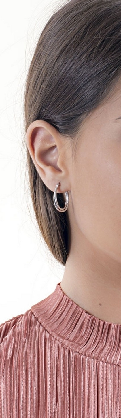 Pendientes aros ovalados en oro blanco de 18k pulido y satinado