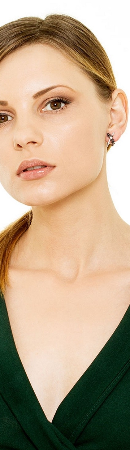 Pendientes cruzados en oro blanco de 18k con diamantes negros