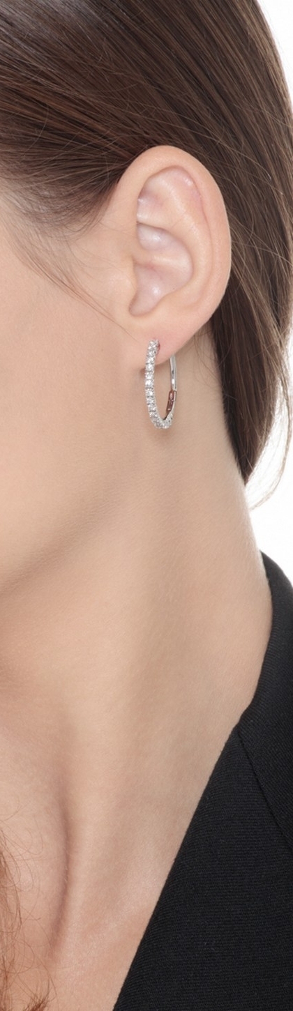 Pendientes aro en oro blanco de 18k con diamantes naturales