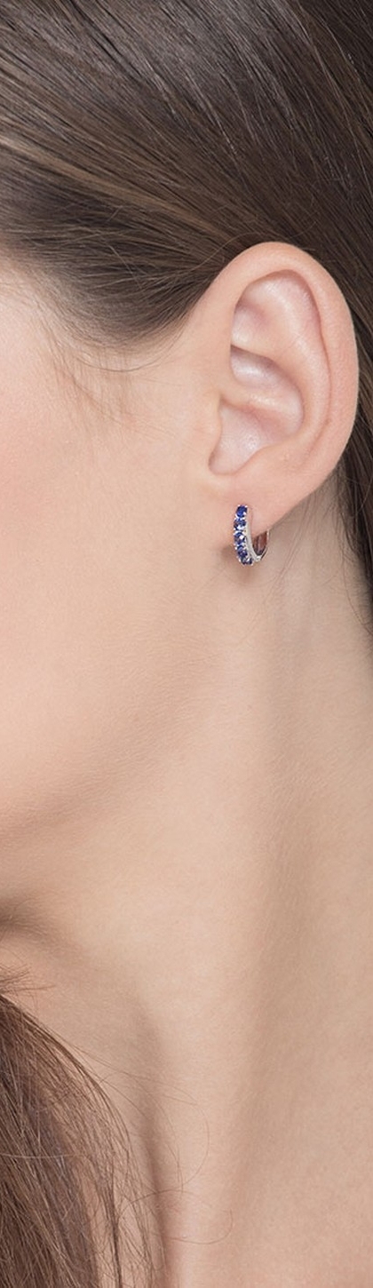 Pendientes de aro de oro blanco de 18k con zafiros azules
