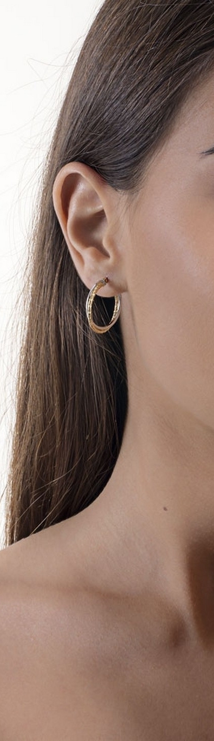 Aros bombados en oro amarillo 18k con diseño semi trenzado