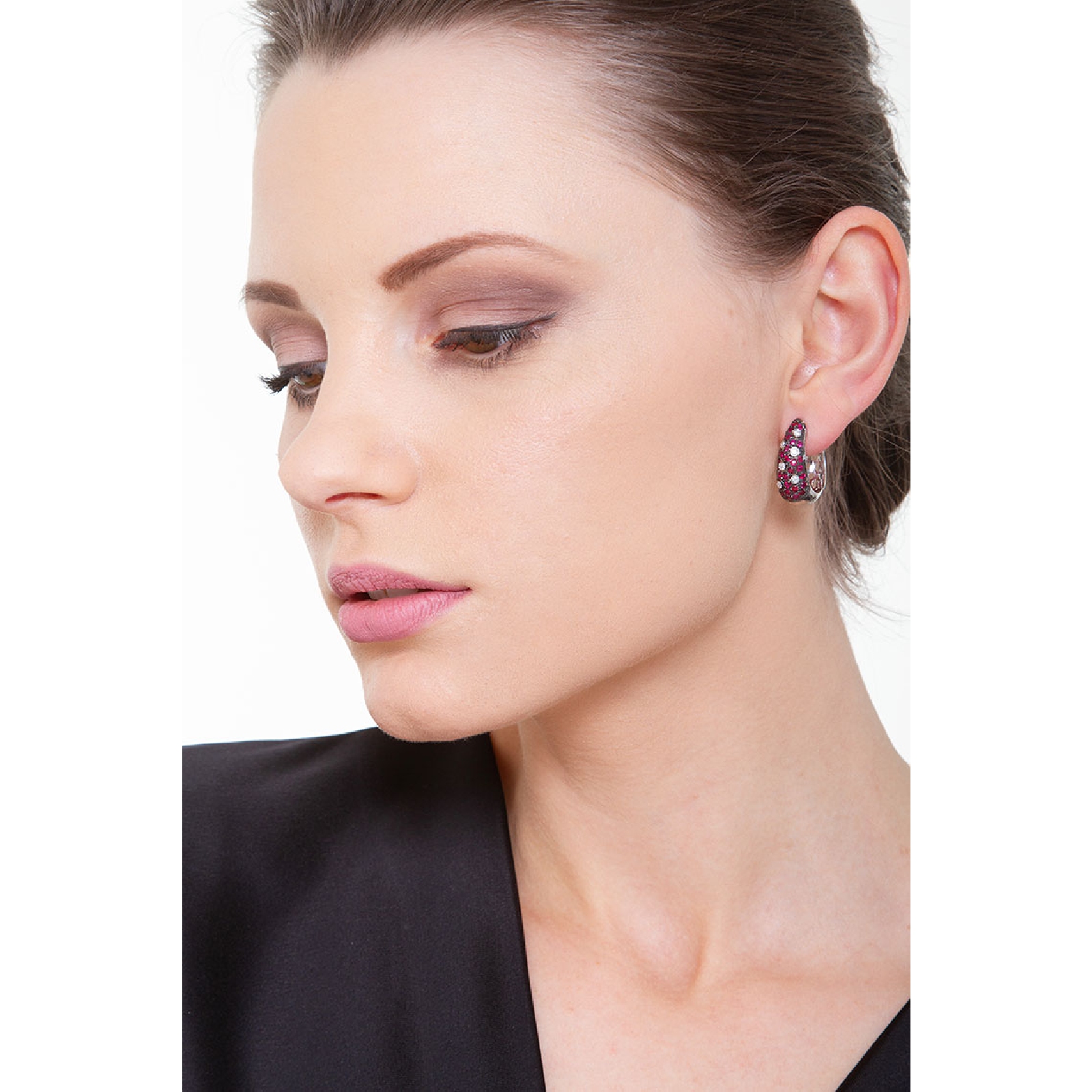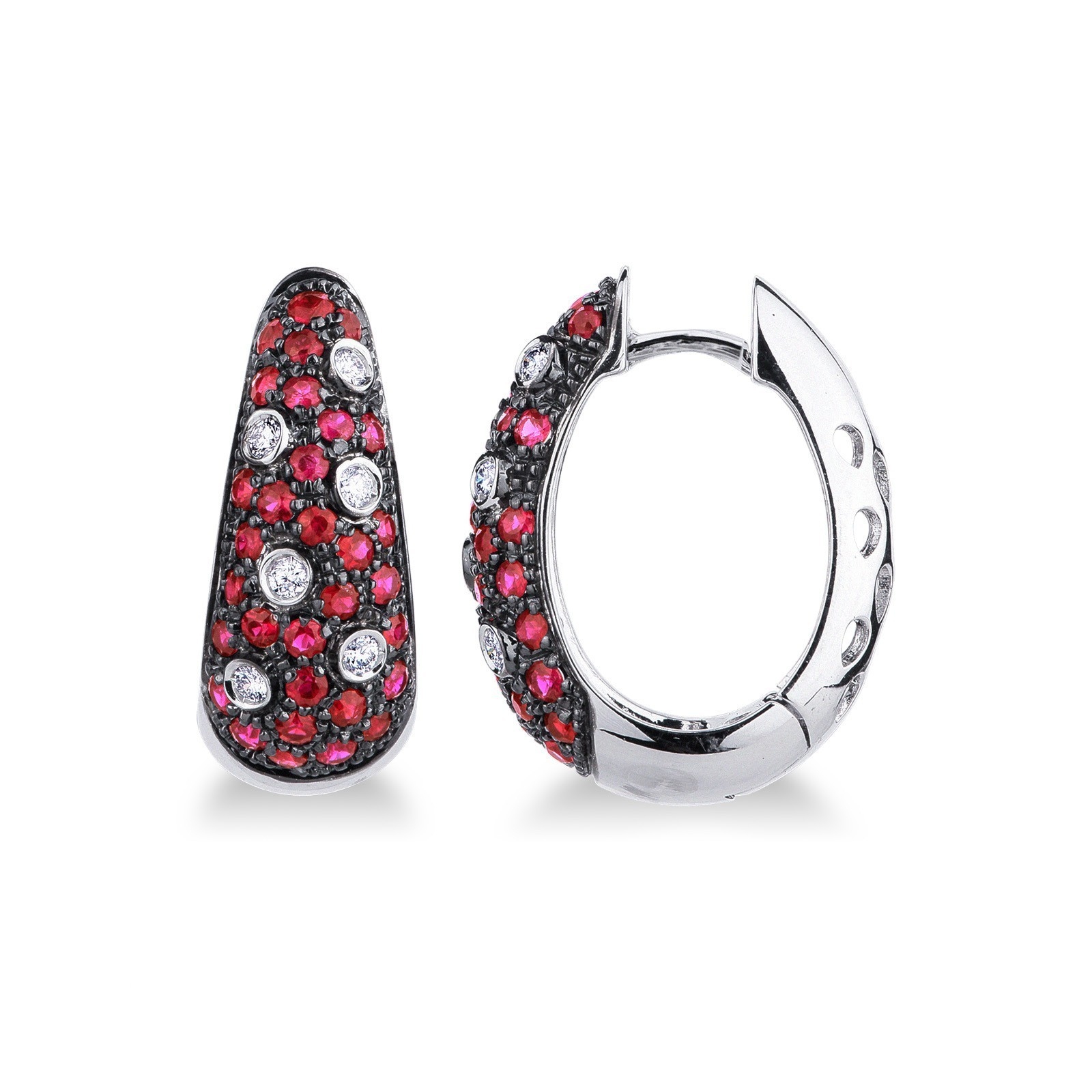 Pendientes de aro en oro blanco 18k con diamantes y rubíes