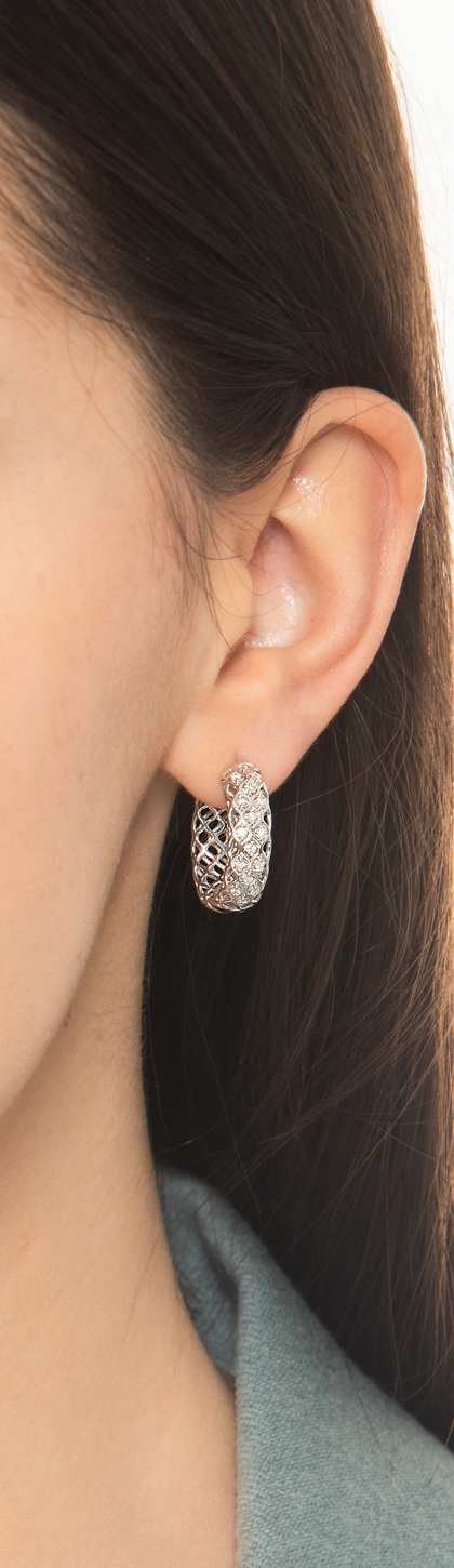 Pendientes de aro en oro blanco 18k con efecto red y diamantes