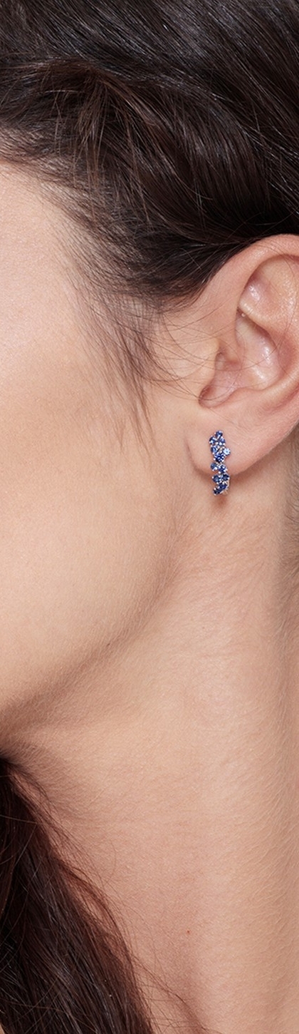 Pendientes de aro en oro blanco 18k con zafiros azules