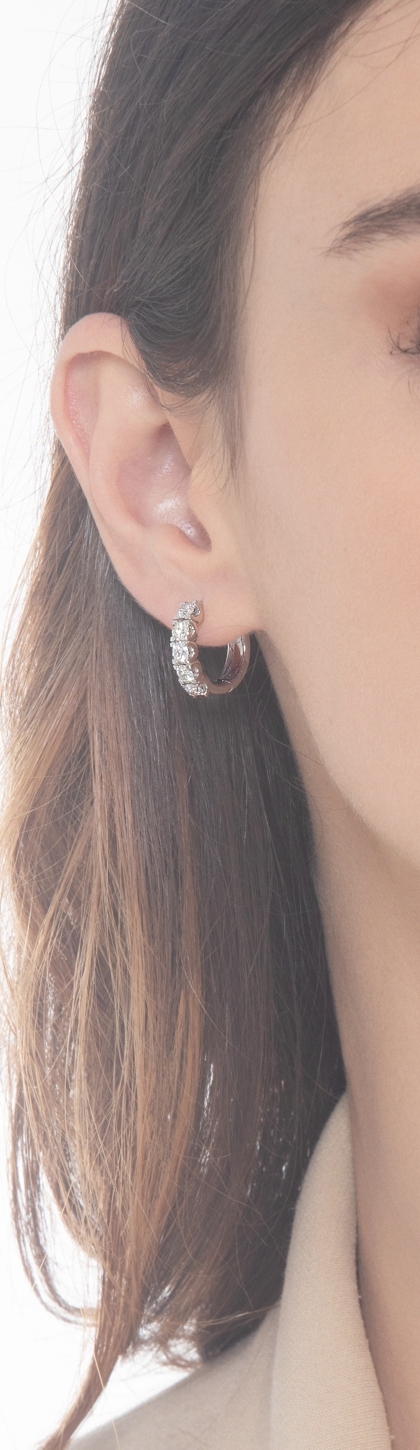 Aros con tres filas de diamantes en oro blanco 18 kilates