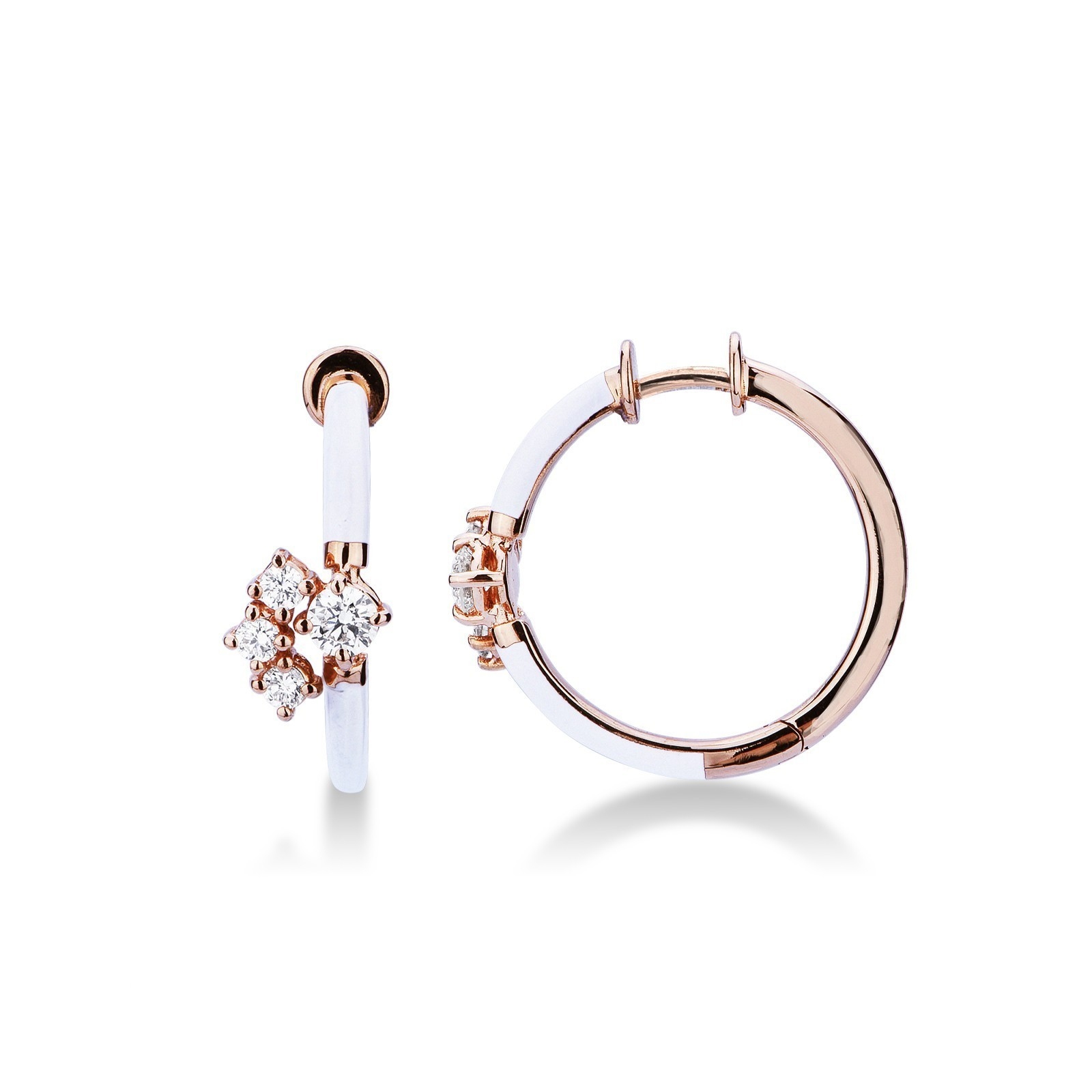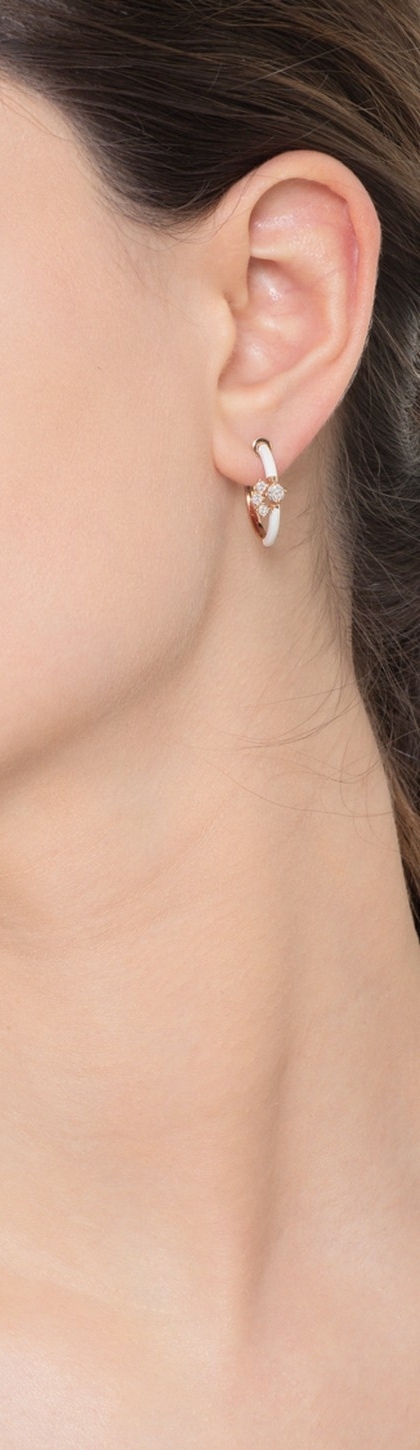 Pendientes de aro en oro rosa 18k esmaltados en blanco con diamantes