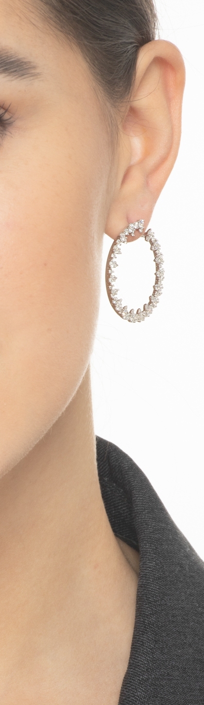 Aros en Oro Blanco 18k con Tres Filas de Diamantes ct. 2,60