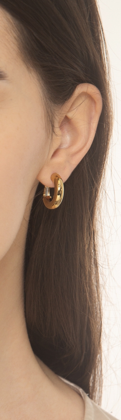 Aros bombados en oro amarillo 18k con diseño semi trenzado