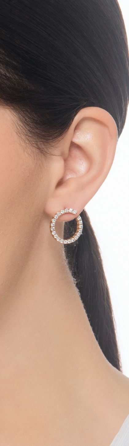 Pendientes oro rosa 18k con diamantes y acabado estriado