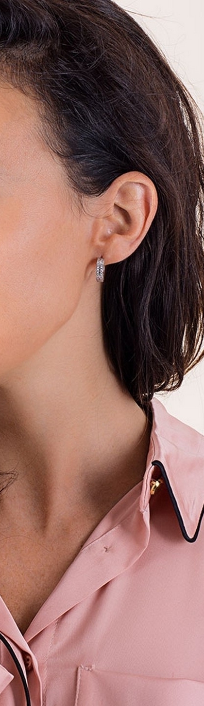 Pendientes en oro blanco con dos hileras de circonitas
