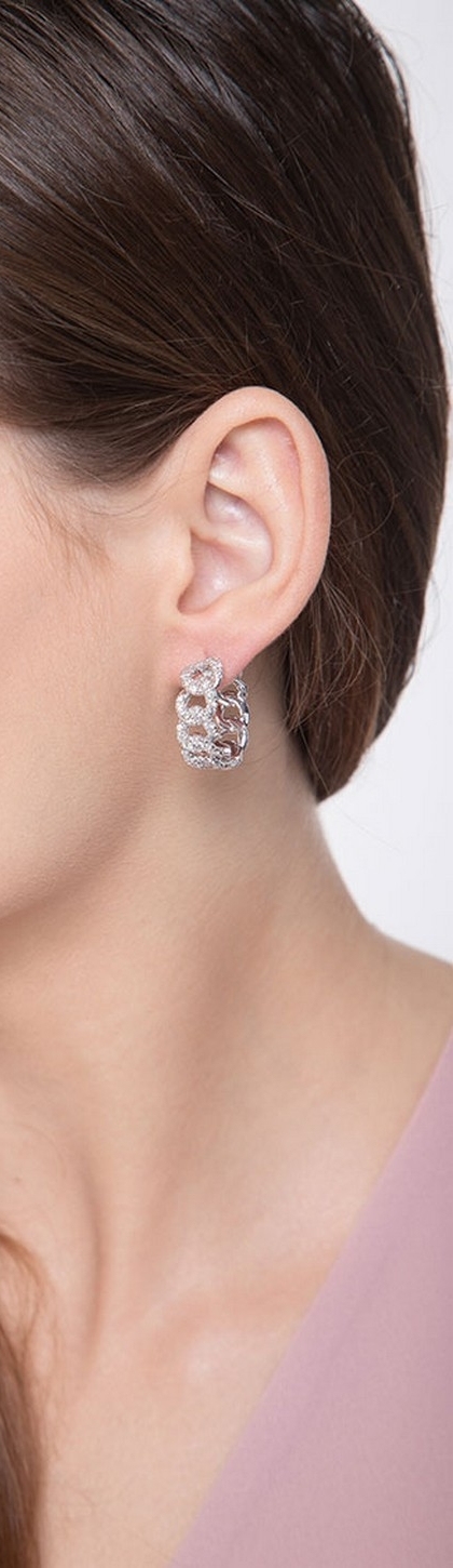 Pendientes mujer Cuban Link en oro blanco 18k con diamantes