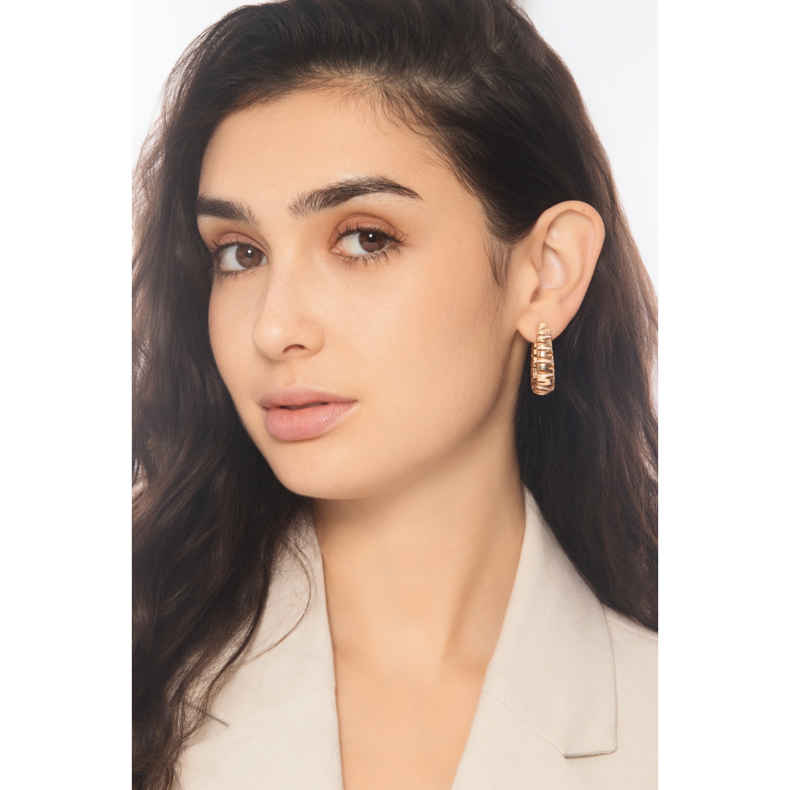 Pendientes oro rosa 18k con diamantes y acabado estriado