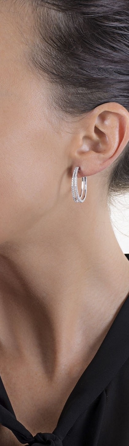 Pendientes de aro con diamantes y oro blanco18 kilates