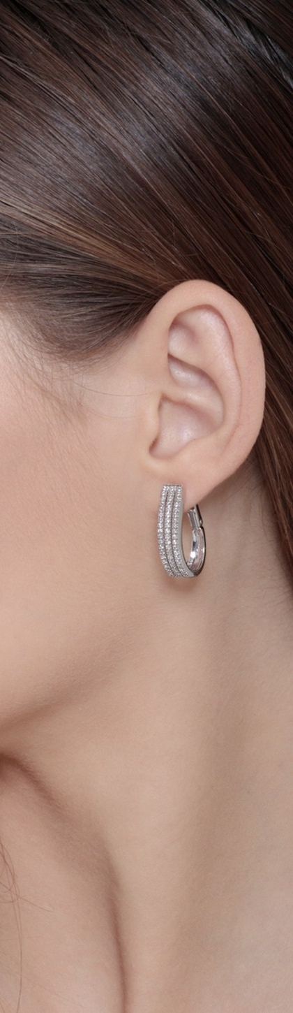 Pendientes ovalados en oro blanco de 18k con triple fila de diamantes