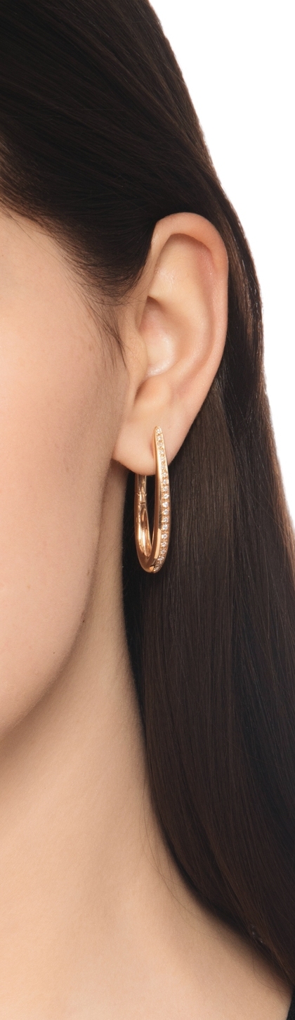 Pendientes ovalados en oro rosa de 18 quilates con diamantes, 3,3 cm
