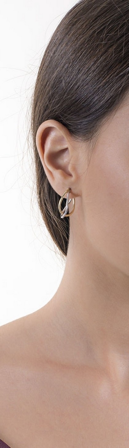 Pendientes ovalados entrelazados en oro blanco y amarillo