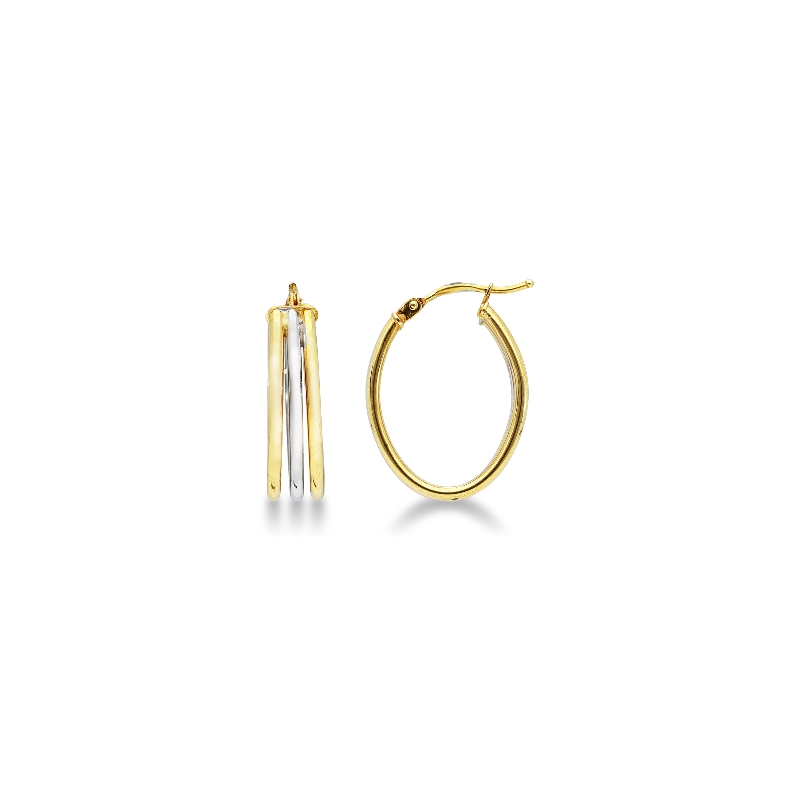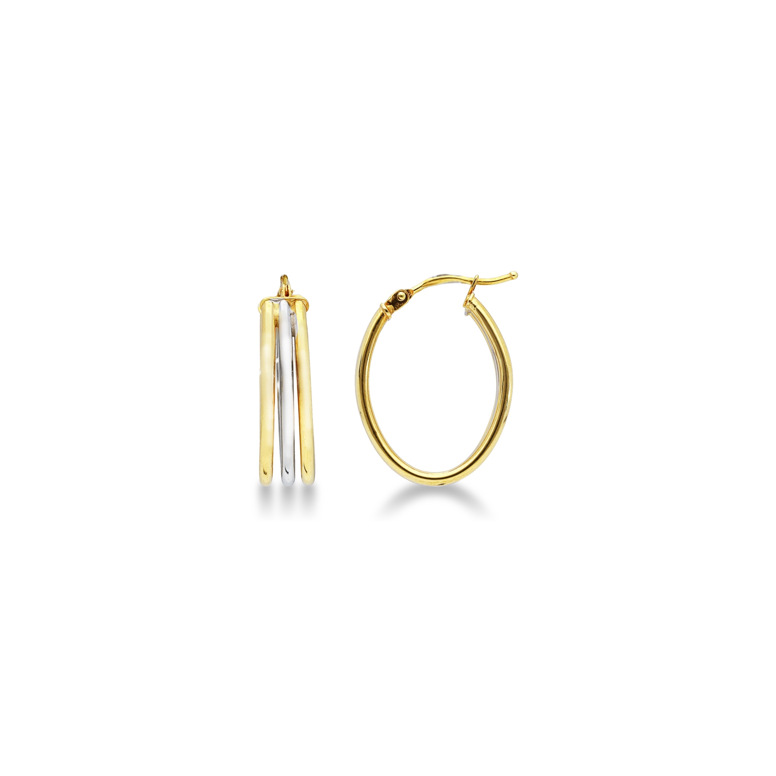 Pendientes ovalados entrelazados en oro blanco y amarillo