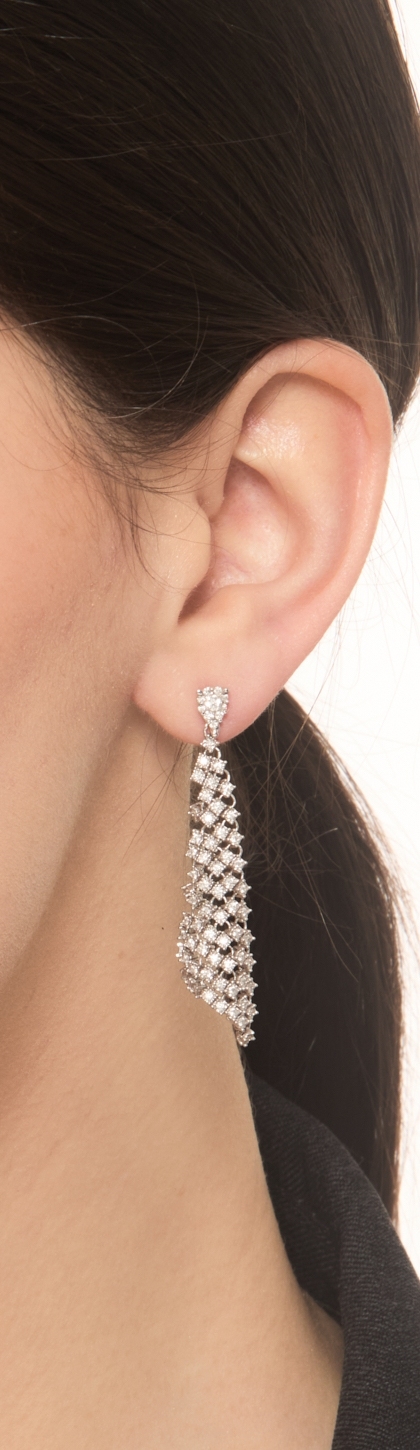Pendientes colgantes de tejido con diamantes en oro blanco de 18 quilates