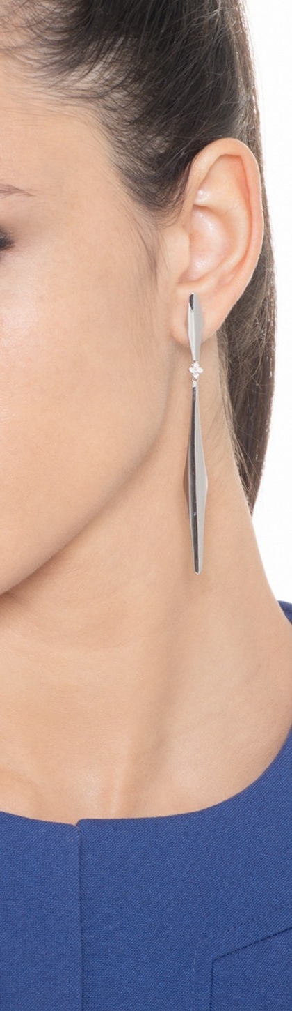 Pendientes colgantes en barra de oro blanco 18k con diamantes