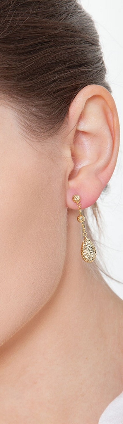 Pendientes colgantes en forma de gota en oro amarillo de 18 quilates