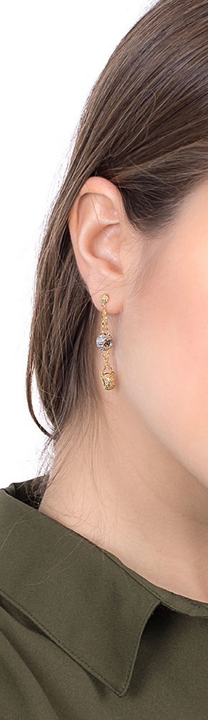 Pendientes colgantes en oro amarillo y blanco diamantados