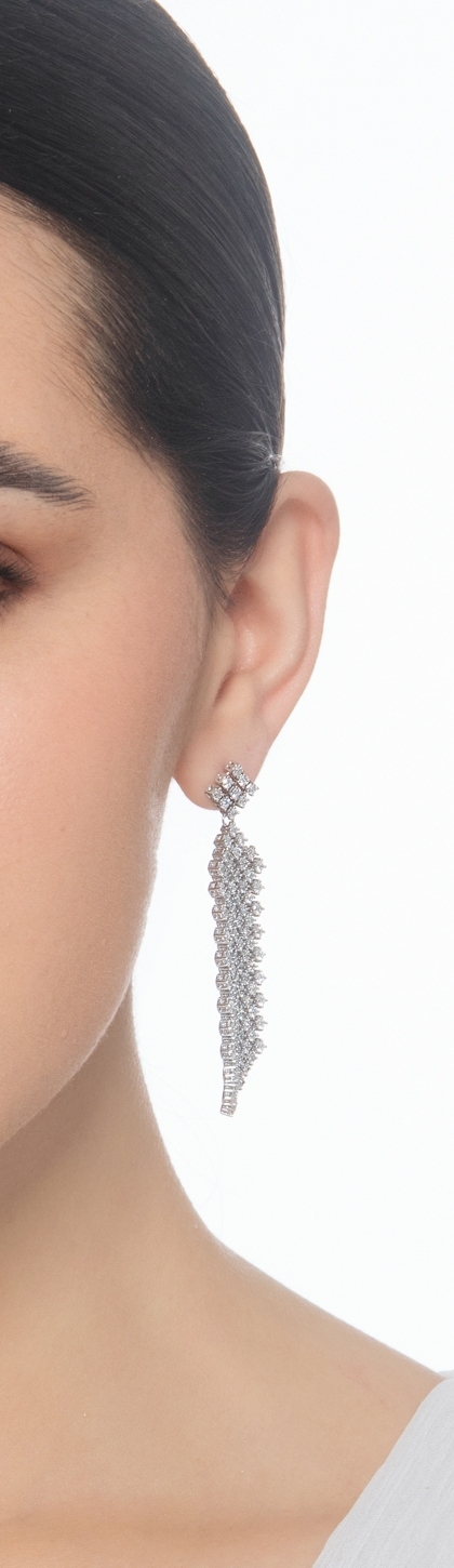 Pendientes colgantes en oro blanco 18k con diamantes brillantes