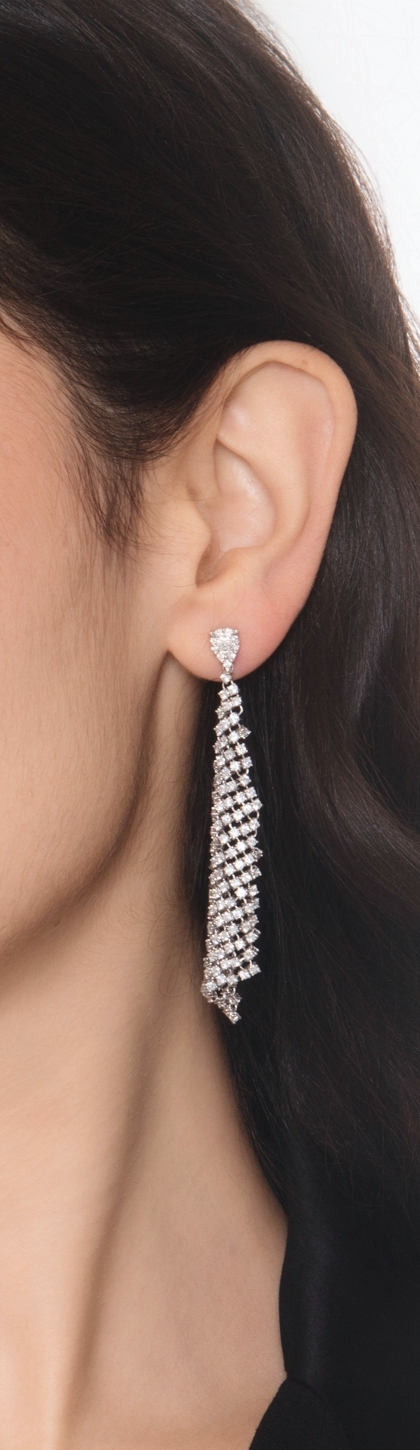 Pendientes colgantes en tejido de oro blanco 18k con diamantes