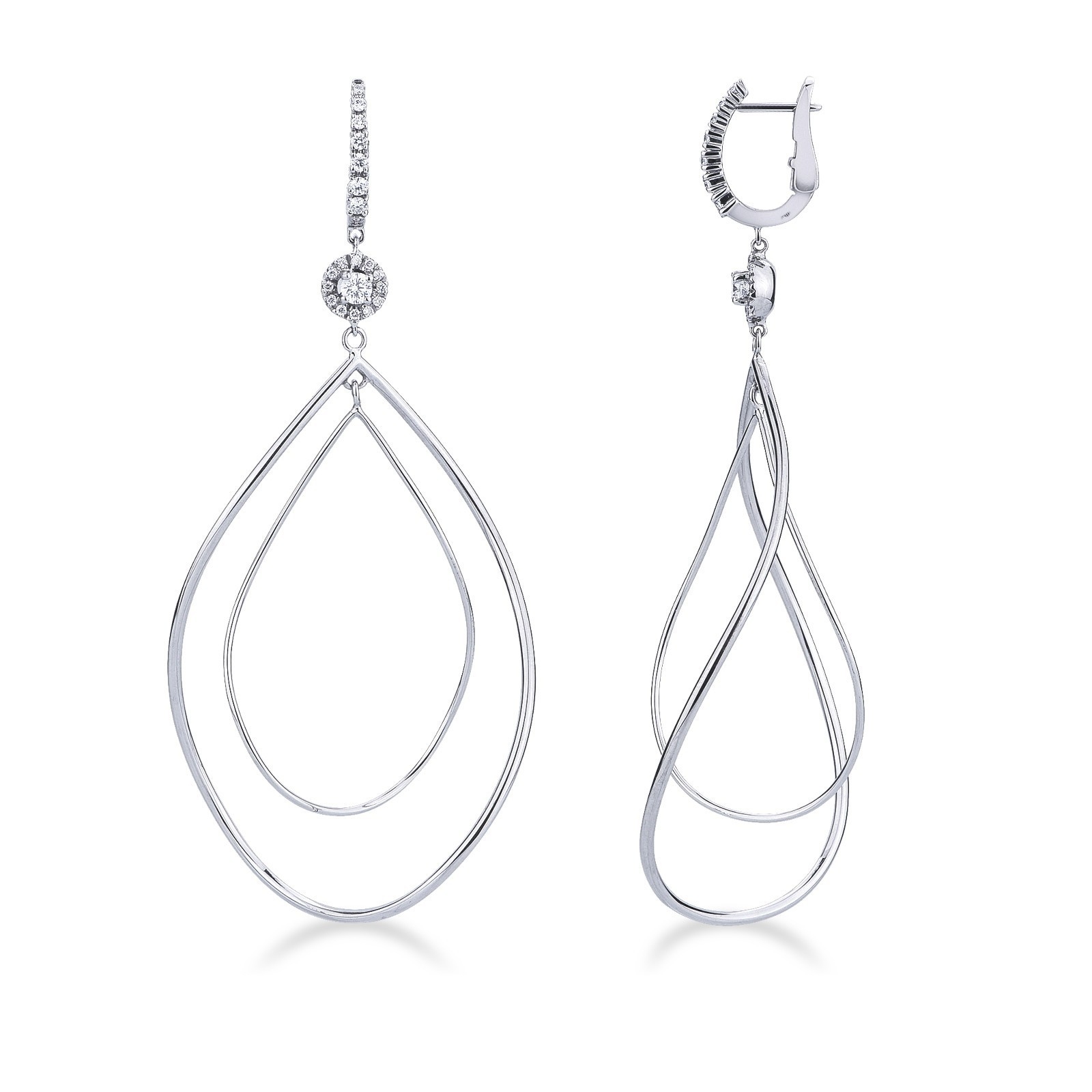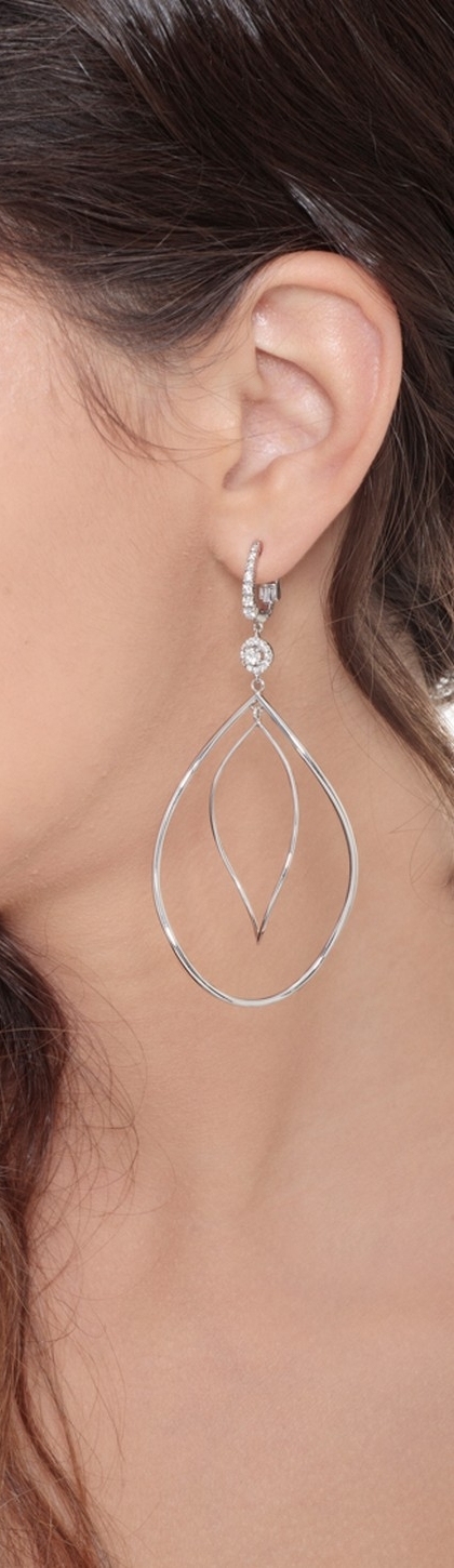 Pendientes colgantes ovalados en oro blanco 18k con diamantes