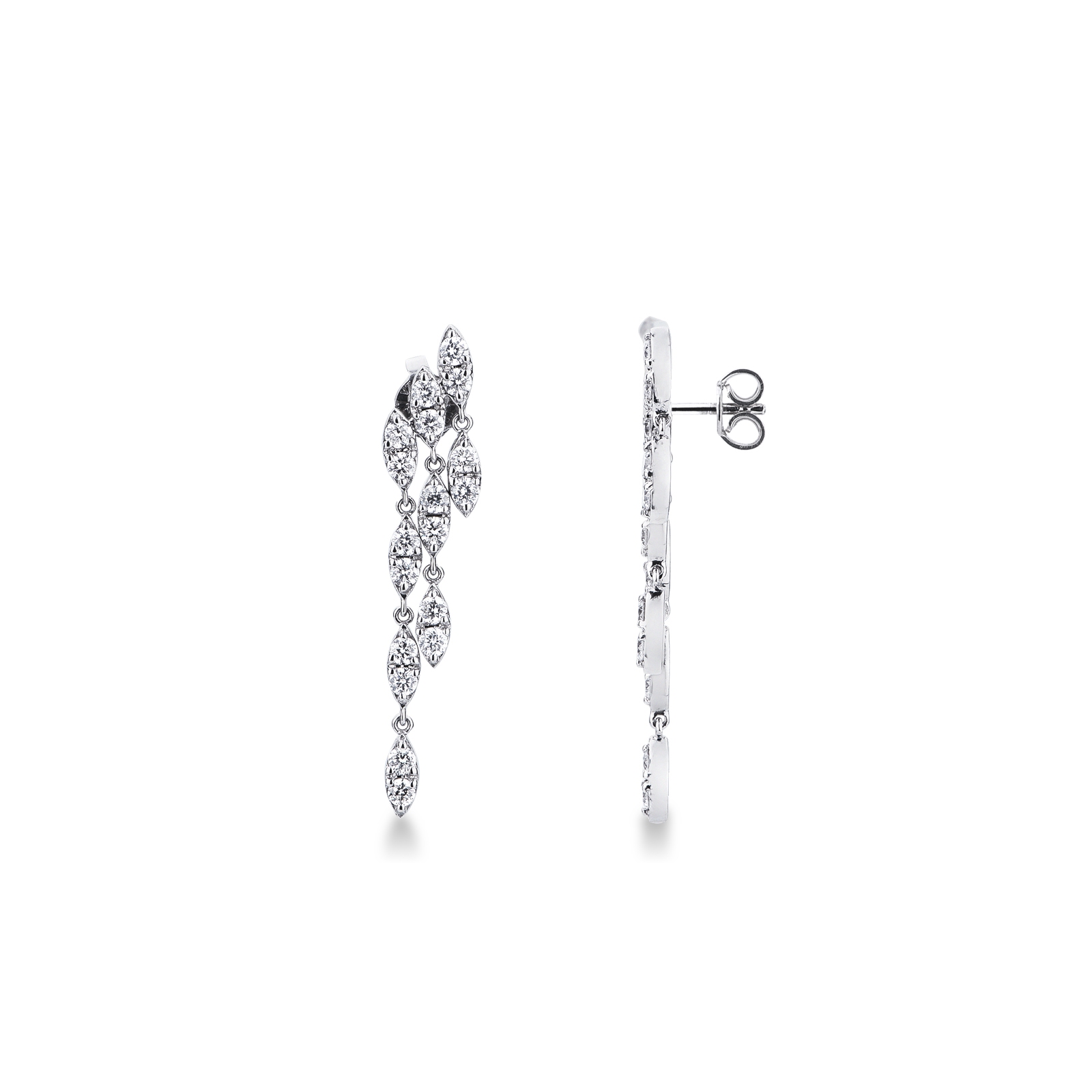 Pendientes colgantes tres filas oro blanco 18 diamantes