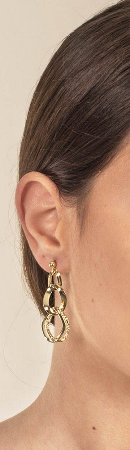 Pendientes de cadena en oro amarillo 18k, diamantados, colgantes e intrecciados