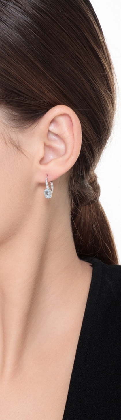 Pendientes de gancho en oro blanco con aguamarinas y diamantes