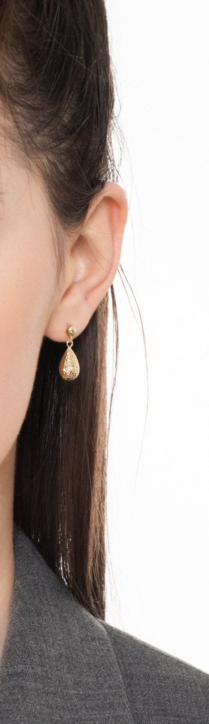 Pendientes de gota en oro amarillo 18k, acabado godronado