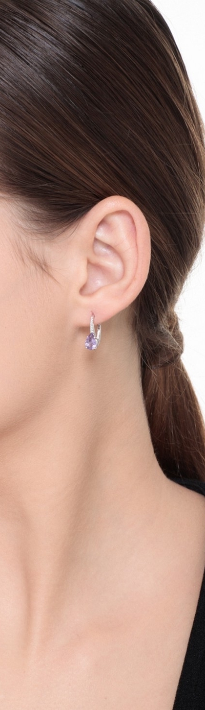 Pendientes de oro blanco de 18k con amatistas y diamantes