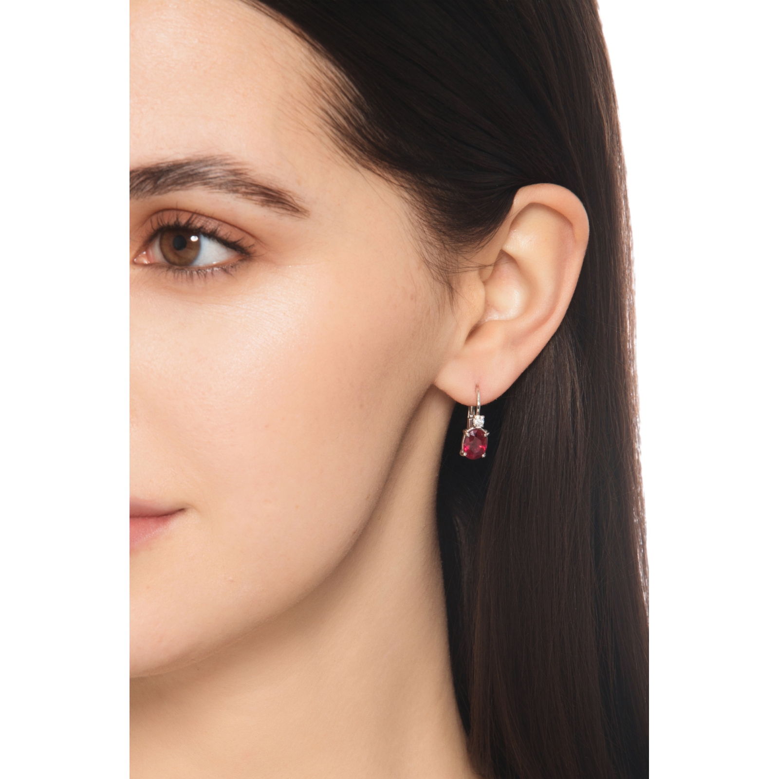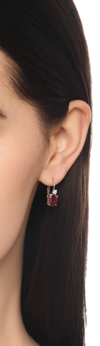 Pendientes de oro blanco de 18k con diamantes y rubíes talla ovalada