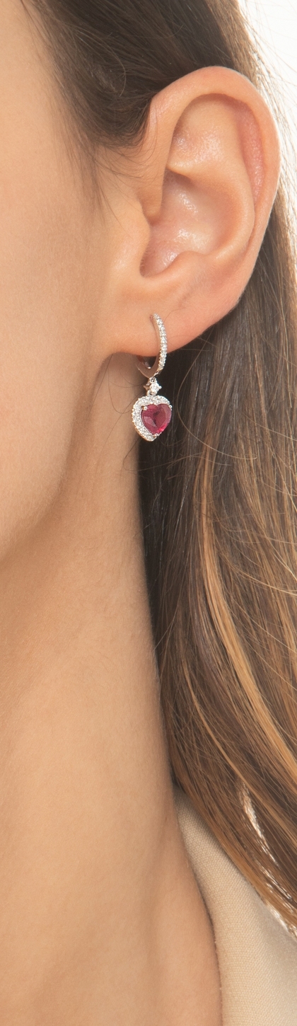 Pendientes de oro blanco de 18k con rubíes en corte corazón