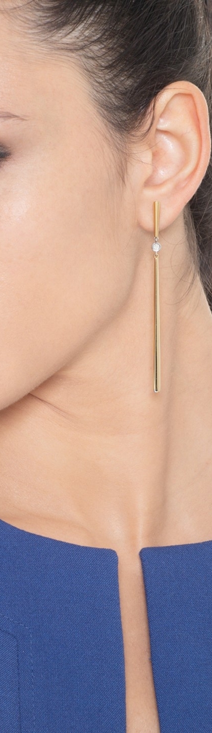 Pendientes en barra de oro amarillo y blanco 18k con diamante