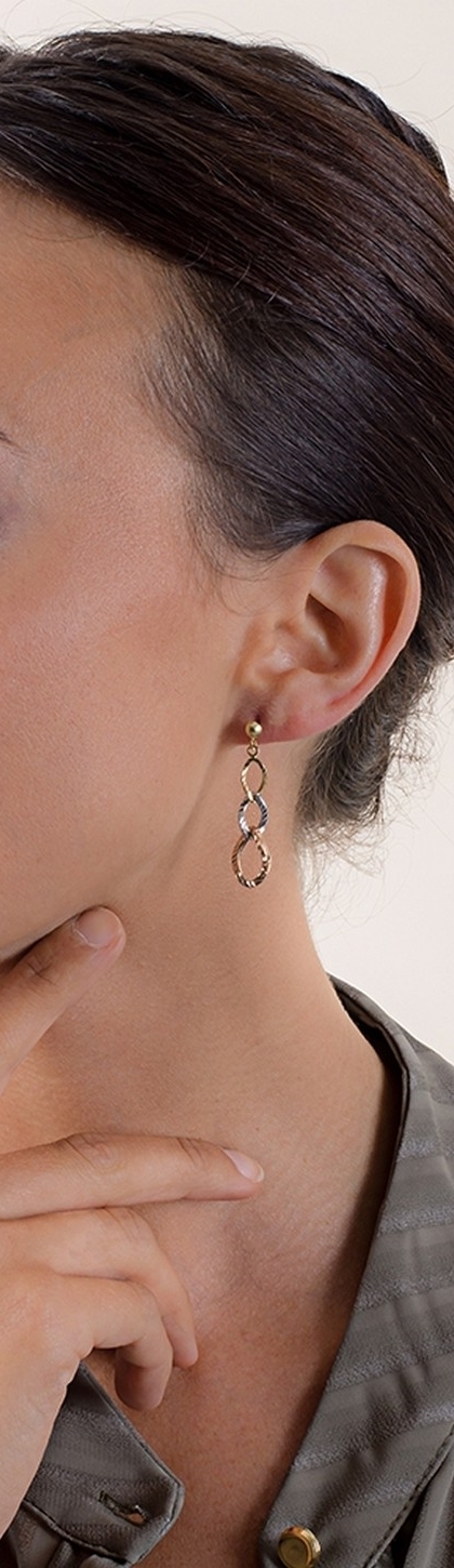 Pendientes de cadena en oro amarillo, blanco y rosa de 18k diamantados