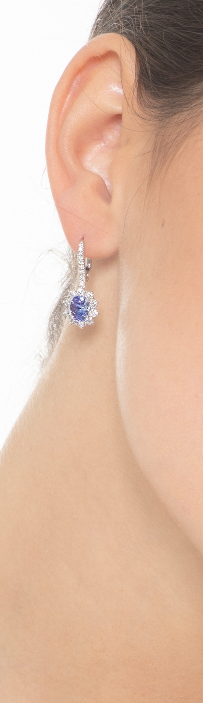 Pendientes en oro blanco 18k con tanzanitas ovaladas y diamantes halo