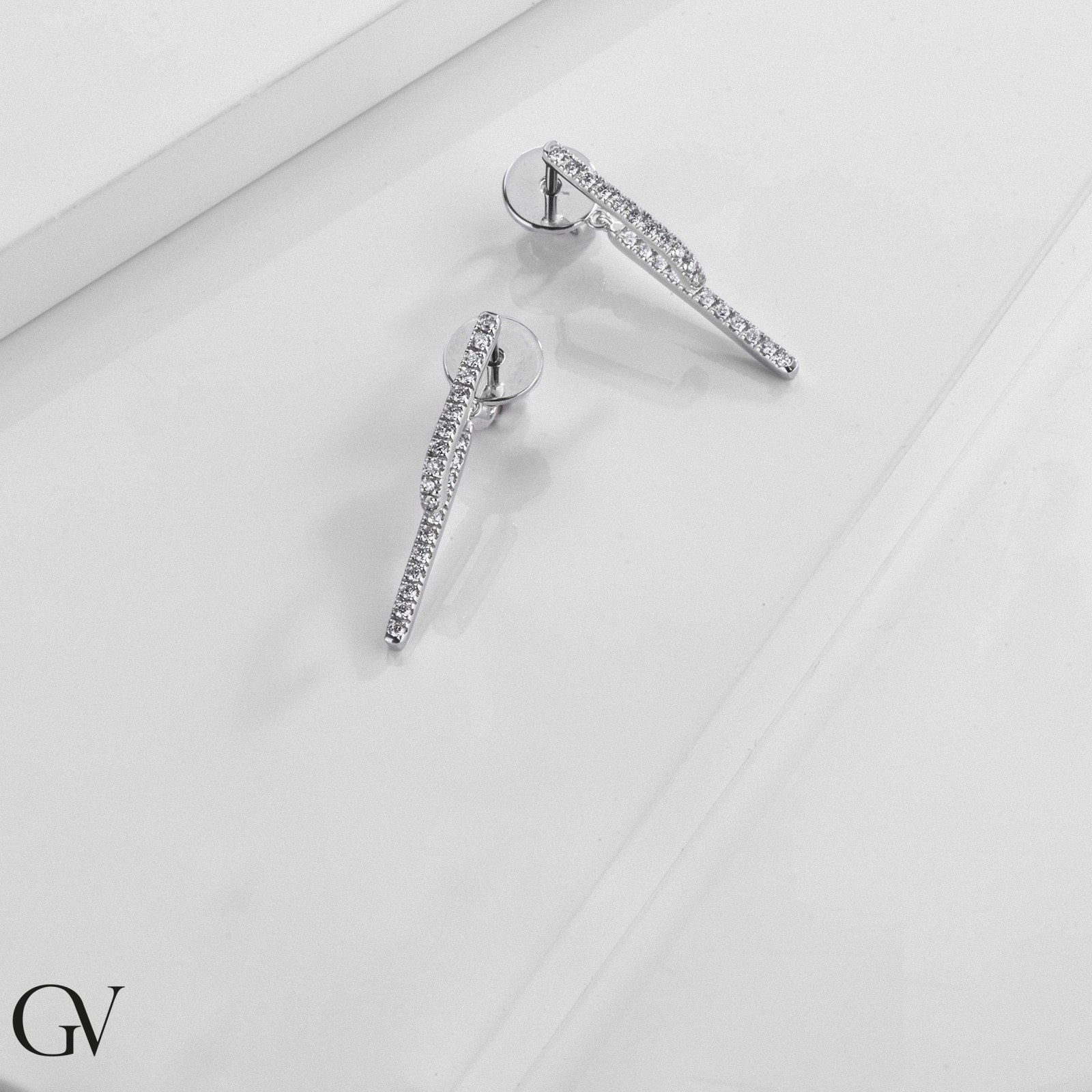 Pendientes en oro blanco 18k con tres filas de diamantes en cascada