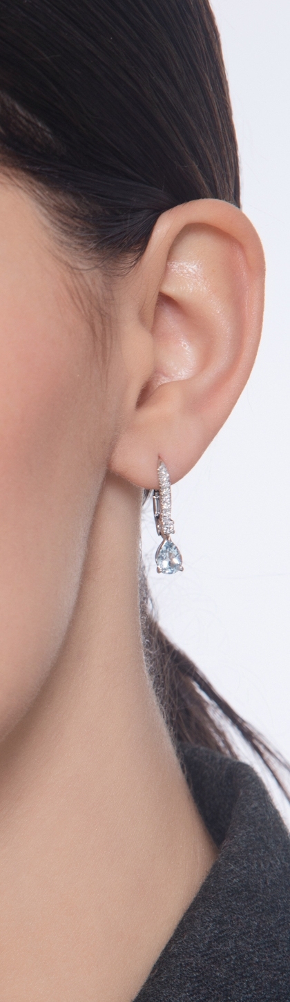 Pendientes en oro blanco 750 con aguamarina gota y diamantes