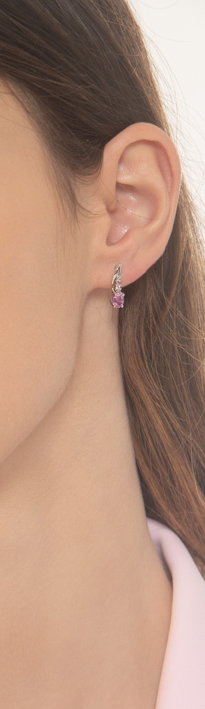Pendientes en oro blanco de 18 quilates con zafiro rosa y diamantes